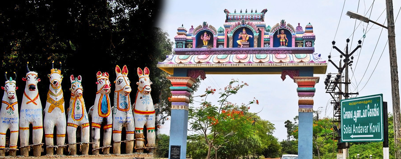 Sri Arulmigu Solai Valartha Ayyanar Temple is one of the famous village guardian Ayyanar temple in Kothari at Palathur village near Karaikudi, Chettinad region in Sivaganga District. Solai Andavar temple is located in a beautifully serene and idyllic greenish environment, as per the name “Solai Valartha Aiyyannar"