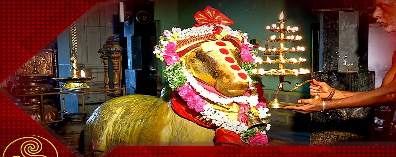 with a Srichakraa inscribed between the two horns. It's considered to be very sacred to seek the blessings of Almighty Sri Sundaresvarar through the good wishes of Sri Nandheeshwarar of Vendhanpatti.